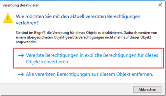 The inherited authorizations are converted into explicit authorizations and can then be changed: