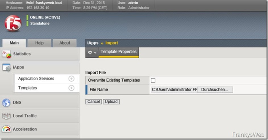 Once the iApp template has been downloaded and unpacked, it must be imported onto the LTM: