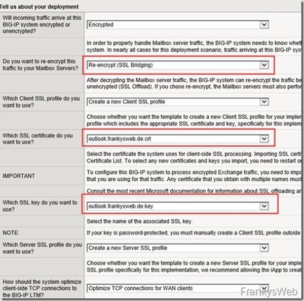 At this point I make it easy for myself, I use SSL bridging to make as few changes to the Exchange environment as possible. The certificate that was previously imported is also selected here.
