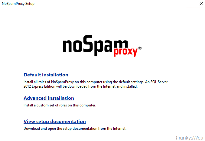 The NoSpamProxy setup automatically downloads and installs SQL 2012 Express: