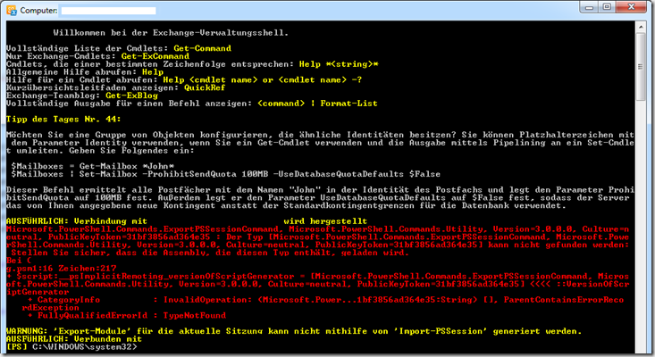 Immer mal wieder was neues, heute beglückte mich die Exchange Management Shell unter Exchange 2010 mit diesem Fehler: