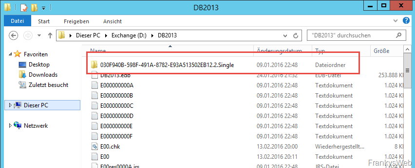 Der Index befindet sich in diesem Fall im Verzeichnis „d:\DB2013“, im Ordner der Datenbank gibt es für den Index einen Ordner der die Datenbank GUID im Ordnernamen enthält: