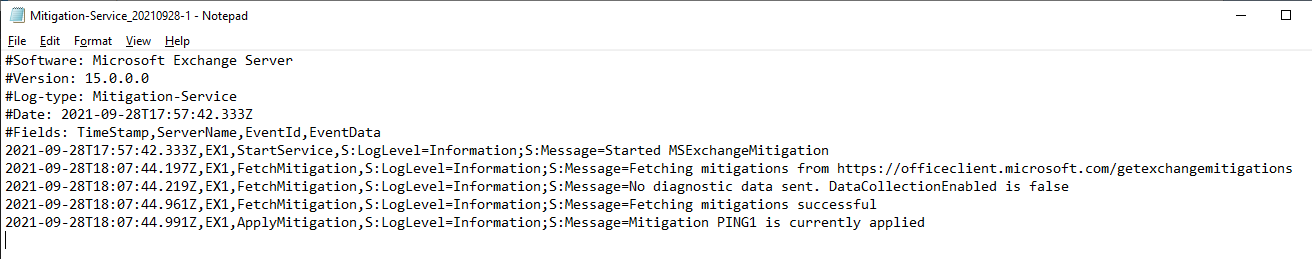 2021-10-14T14:57:35.405Z,WIN-T-EX01VM,FetchMitigation,S:LogLevel=Information;S:Message=No diagnostic data sent. DataCollectionEnabled is false