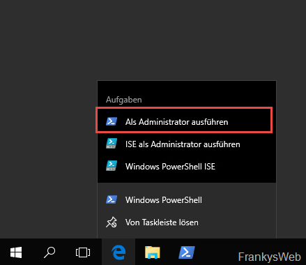Hinweis: Die PowerShell muss als mit administrativen Rechten ausgeführt werden: