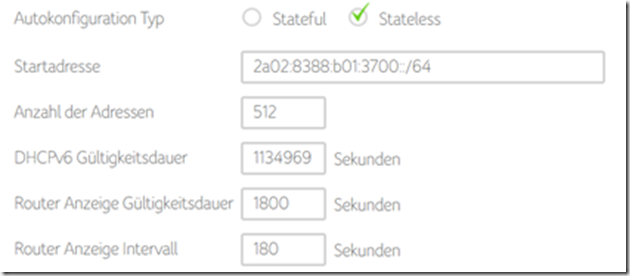 Mein Modem arbeitet nicht mit DHCP. Die Technik dahinter nennt man Stateless Address Autoconfiguration und bedient sich folgender Technik: Der Client startet und der Router bietet ihm eine Global-Unicast Adresse an (Router Advertisement). Dieser Rechner generiert dann seine eigene IPv6 Adresse selbst aus dem angebotenem Netz 2a02:8388:b01:3700::/64 selbstständig. Das bedeutet, es gibt keine zentrale Datenbank der IP-Adressen, wie man es von DHCP unter IPv4 kennt.